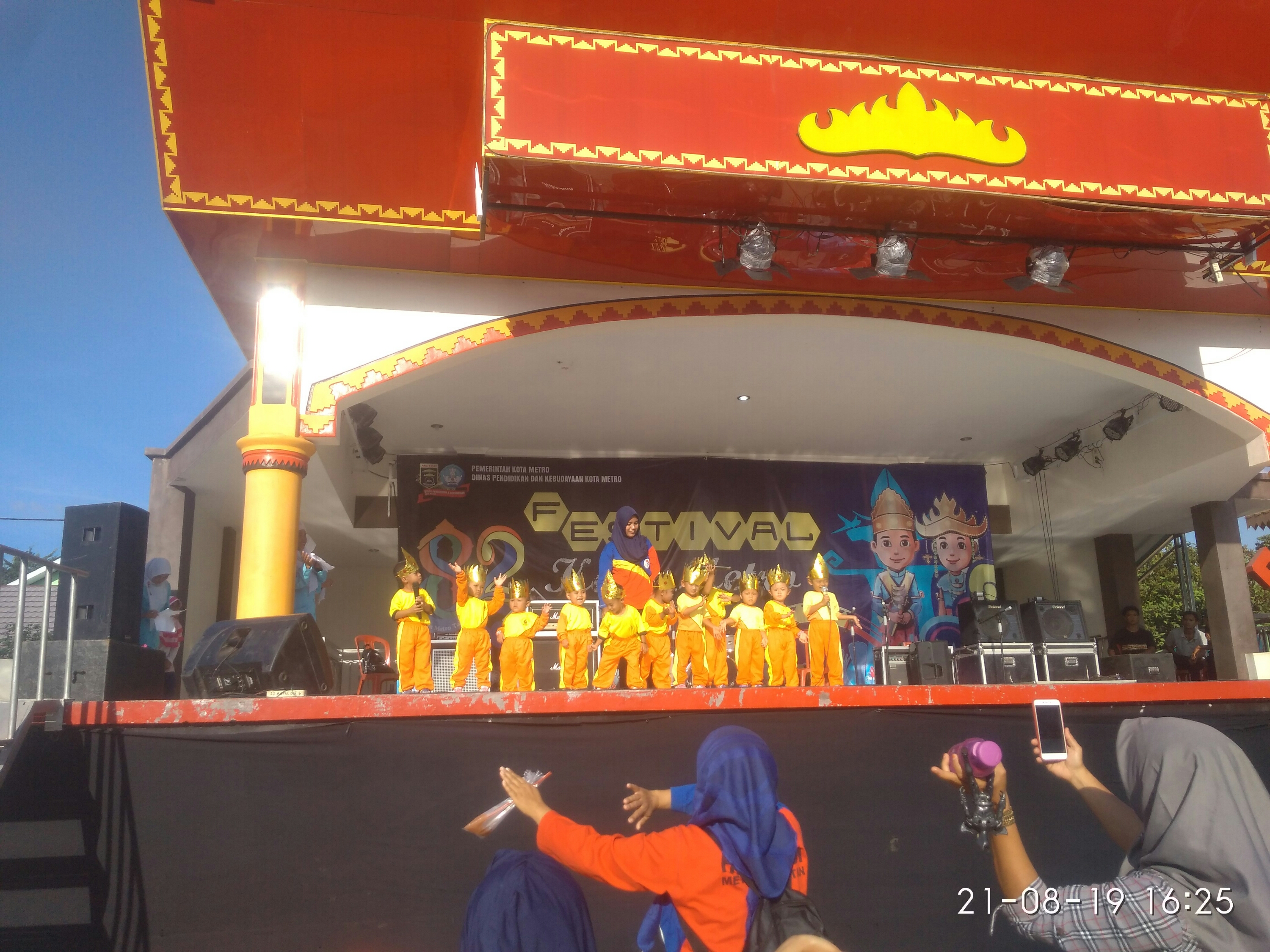 Metro (YakusaNews). Metro Festival Hari ke – 2, menampilkan kesenian dari seluruh anak-anak Paud sekota Metro. Acara ini dimulai pukul 15.00. Kesenian yang di tampilkan anak-anak beraneka ragam, ada yg menampilkan puisi untuk kota Metro, membaca surat pendek, tari-tarian, dan menyanyi. Sekolah Paud yang ikut dalam memeriahkan festival kota Metro berjumlah 24, dan untuk hari ini yang tampil sekitar 12 Paud yang tampil. dan besok akan tampil lagi sekitar 12 Sekolah Paud, kita bagi 2 mas untuk penampilan nya. kata panitia