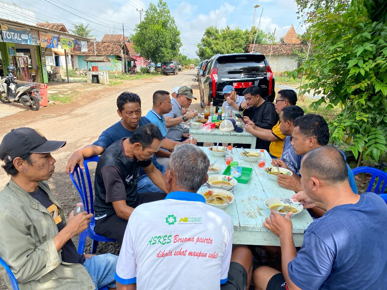 Setelah kegiatan gotong royong selesai, suasana akrab berlanjut dalam makan siang sederhana bersama warga di pinggir jalan depan warung soto. Tanpa sekat, tanpa protokoler ketat, Wali Kota duduk bersama warga dan tokoh masyarakat setempat.