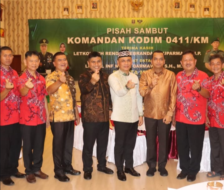 METRO — Walikota Metro Bambang Iman Santoso, menghadiri acara pelepasan pejabat lama Komandan Kodim (Dandim) 0411/KM, Letkol Arh. Rendra Febrandari Suparman, S.I.P, yang berlangsung di gedung Wisma Haji Al-Khairiyah, Rabu (16/042025).